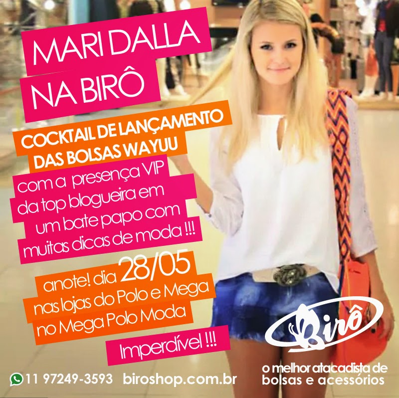 A top blogueira Mari Dalla estará nas lojas da Birô no Polo e no Mega Polo Moda no próximo dia 28.