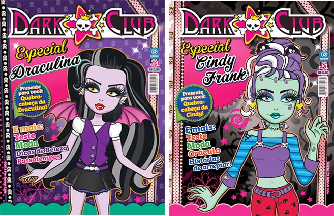 Dando continuidade aos lançamentos de “Dark Club”, além das revistas de atividades e colorir a Deomar Editora acaba de lançar duas edições especiais da revista. A Dark Club Especial Draculina e Dark Club Especial Cindy Frank. Além disso a garotada ganha de brinde um super quebra-cabeça com imagem das personagens.
