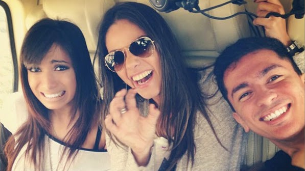 | Anitta e o irmão, Renan, ao lado da empresária Kamilla Fialho |