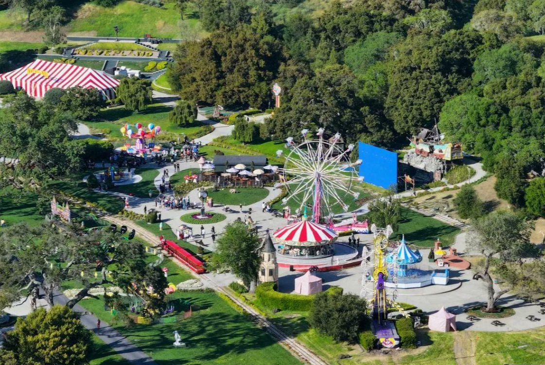 - O lendário Neverland Ranch foi restaurado com roda-gigante, carrossel, trem vermelho e tendas de circo, trazendo de volta o visual dos anos dourados.