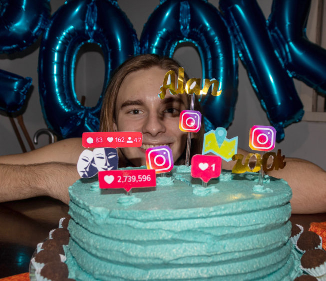 O jovem ator e influenciador, Alan Pfeffer celebrou na última quinta-feira, 10 de setembro, a marca de 200 mil seguidores no Instagram. Alan comemorou a conquista, com amigos e familiares, ao redor de um lindo bolo temático inspirado nos ícones das redes sociais.