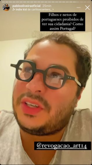 O assunto que atinge milhares de filhos e netos de Portugueses, fez com que o ator pedisse a atenção de seus amigos portugueses, para que nas eleições do próximo dia 30 de Janeiro, escolham partidos que apoiam a causa e assim ocorra a revogação do Art.14 da lei Nacional de Portugal. Segundo ele, inúmeros filhos e netos, não tem direito a cidadania por terem sidos registrados na maioridade.