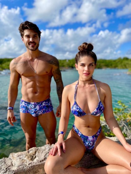 Alef Novaes e Aline Franzoi fazem bronzeamento para uma campanha publicitária em Cancun