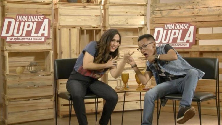 Dieguinho Araújo, do Zappeando, faz teste com Tatá Werneck e descobre que é mais alto que a apresentadora.