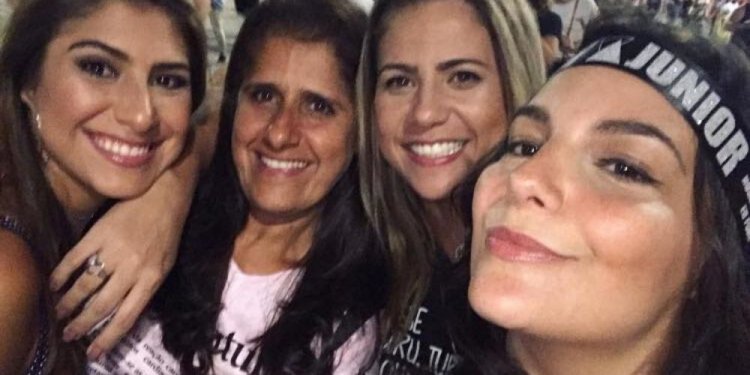 Giulliana Succine vibra com amigas durante última apresentação da turnê de Sandy e Junior