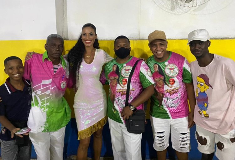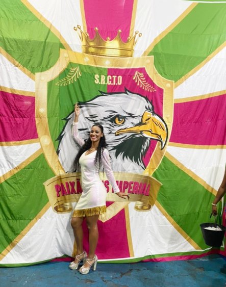 Com vestido revestido de paetês e saltos cravejados em swarovski, a madrinha esbanjou samba no pé e posou com os segmentos da escola, além de prestigiar a primeira participação da torcida Paixão Lins Imperial. No evento, os ritmistas estrearam a nova camisa da bateria, com a foto da madrinha estampada.