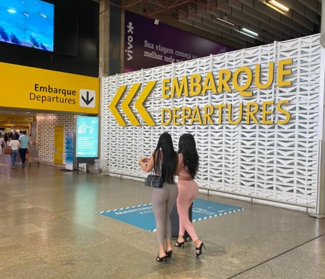 Deia Cavalheiro e Camila Beck, Candidatas do concurso Miss Bumbum 2021, não conseguem embarcar para o Paraguai, porque foram paradas por fãs no embarque do aeroporto de Guarulhos (GRU) para tirarem fotos com elas: “não esperávamos tanto carinho do público” – afirmam.