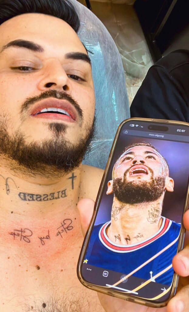 Ele tatuou uma frase que também está desenhada no corpo do craque