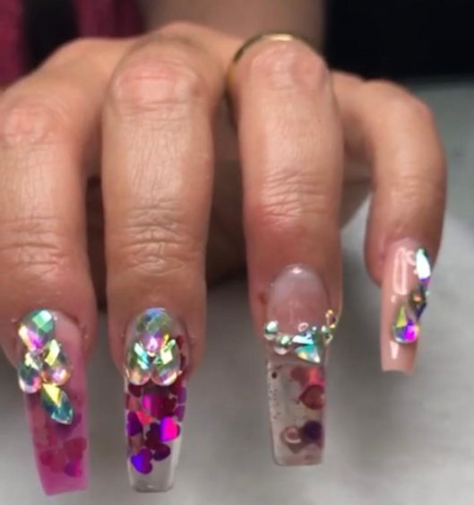 Com isso, as clientes que procuram sua esmalteria são diferenciadas, pois gostam de unhas longas e com formatos, como Stiletto, Almond, Ballerina e muitas pedrarias