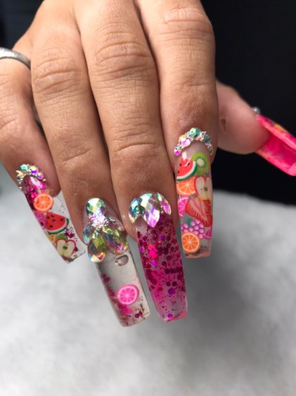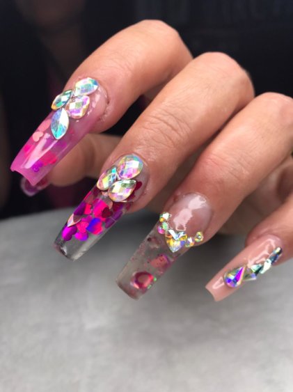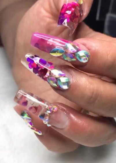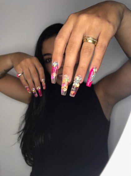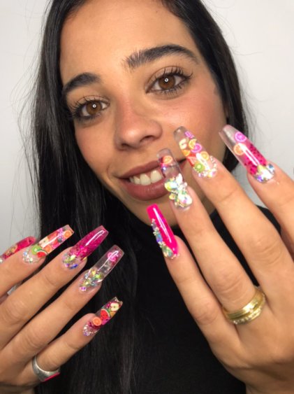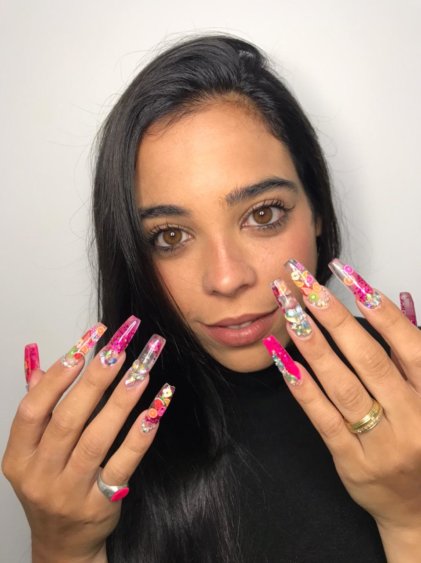 Com isso, as clientes que procuram sua esmalteria são diferenciadas, pois gostam de unhas longas e com formatos, como Stiletto, Almond, Ballerina e muitas pedrarias