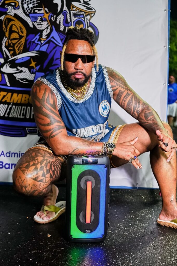 Para a apresentação, o muso surgiu caracterizado como funkeiro, em sintonia direta com o enredo “Tamborzão – O Rio é Baile, o Samba é Black!”, que será apresentado pela escola no Carnaval. A escolha do figurino dialoga com a proposta estética e cultural do tema, que celebra a influência da cultura black e do funk carioca na construção da identidade musical e social do Rio de Janeiro.