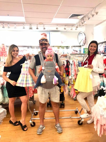 O cantor da dupla Edson, da dupla Edson & Hudson, e sua esposa Deia Cypri, aproveitaram os dias de férias nos Estados Unidos pra fazer o enxoval kids pra a filha Bella, que completou 10 meses.