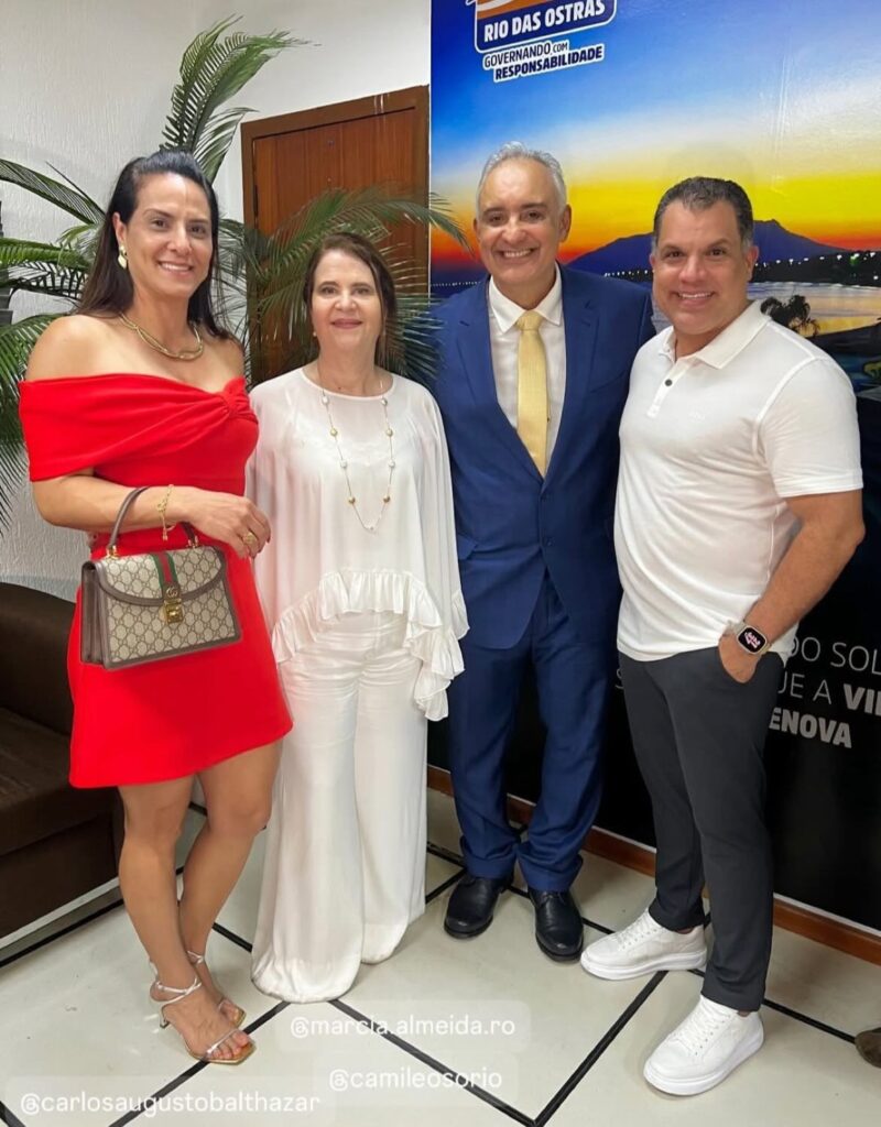 O cardiologista Dr. Thiago Barroso e sua esposa, a empresária Camile Osório, marcaram presença na cerimônia de posse do amigo Carlos Augusto. Na ocasião, o casal foi recepcionado por Carlos Augusto e sua esposa, a primeira-dama Márcia Almeida. O evento reuniu personalidades e autoridades em um clima de celebração e compromisso.