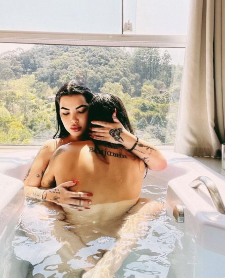 A atriz Vitória Guarizo postou um registro na tarde desta segunda-feira (5), em momento intimista com seu namorado, o DJ e Produtor BenBek, o casal posou abraçados dentro de uma banheira em um cenário paradisíaco.