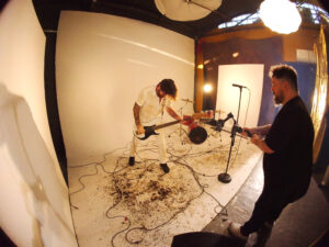 De cada batida à paleta de cores que acompanha os sentimentos da canção, cada escolha estética sugere uma vivência sensorial, que é mostrada com leveza e o humor. Nesse contexto, Thiago ri lembrando que o estúdio “tinha cheiro de bebê”. “O Thiago entrou nas minhas loucuras do clipe, como cair da cadeira ou o take da cara amassada no vidro. A gente se divertiu durante a gravação e o resultado reflete muito bem isso!”, conta o cantor e guitarrista Leo Fernandes.