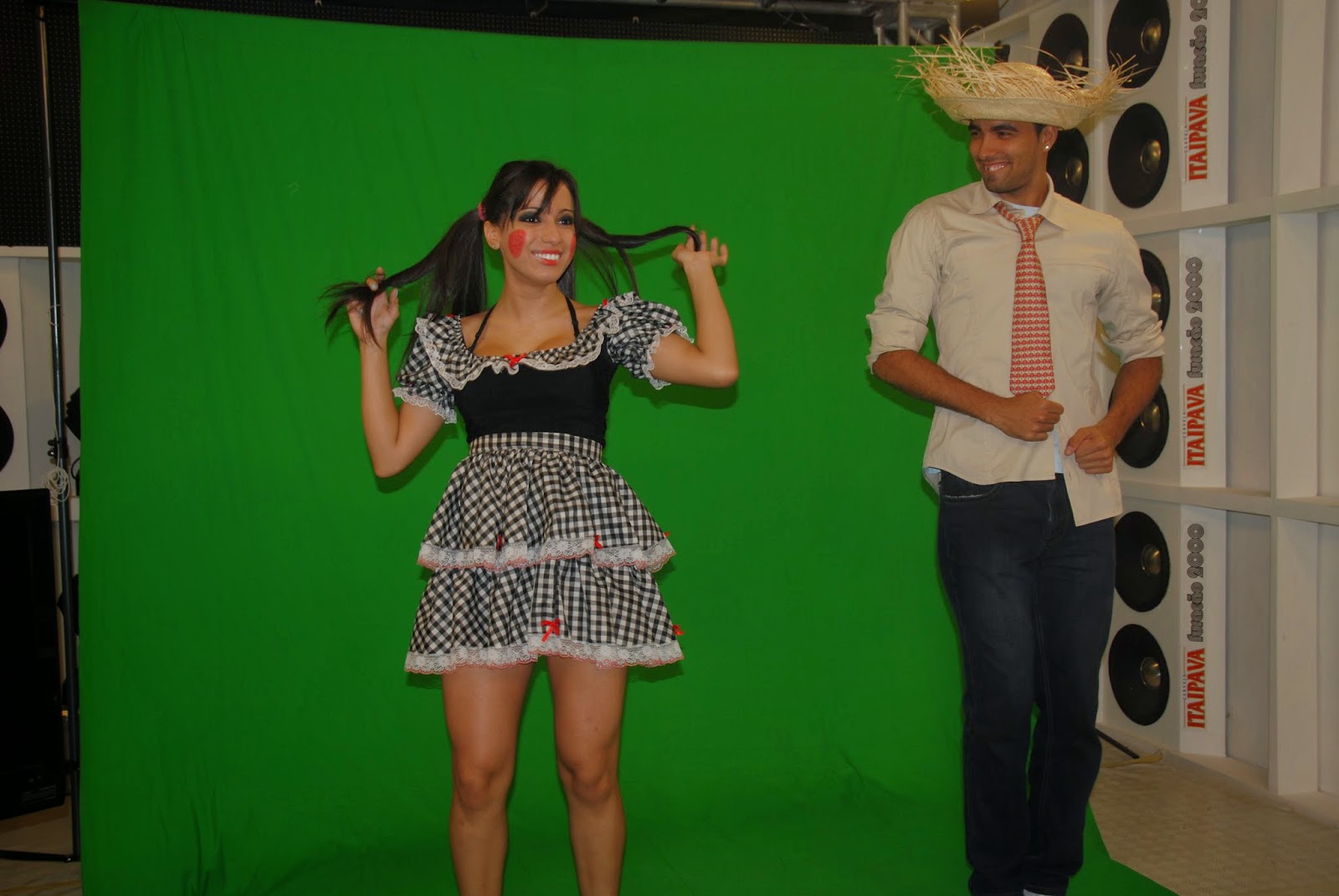 Nessa época ela trabalhava na Furacão 2000 e nas fotos está gravando para um comercial de um baile de junho da empresa. Olha que fofa!