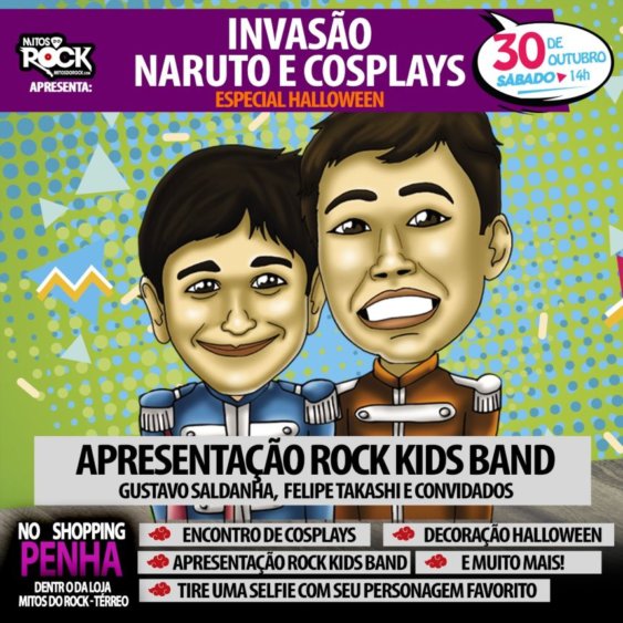 Neste sábado, 30 de outubro, na Loja Mitos do Rock, situada no Shopping Penha, na zona leste da capital paulistana, vai rolar a invasão NARUTO e COSPLAYS.