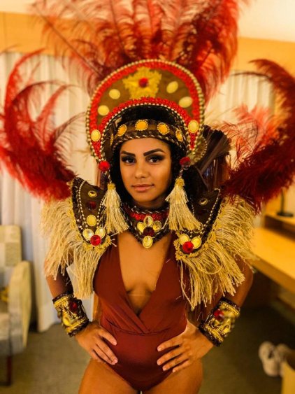 Mostrando sua beleza e desenvoltura a modelo conquistou a avenida com seu charme ao se destacar na alegoria que representava os personagens clássicos nordestinos do Chico Anysio, homenageado pela escola.