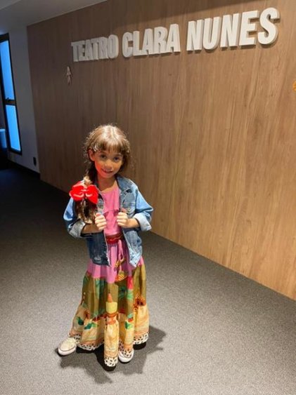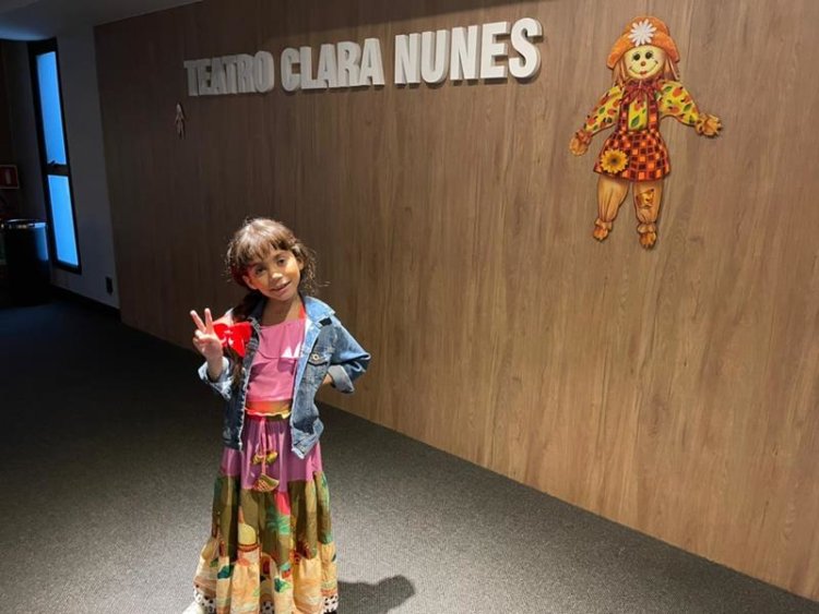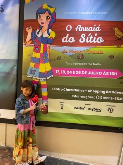 A modelo e influencer mirim, Sophia Braz, se encantou e divertiu muito com o ‘Arraiá do Sítio’ no teatro Clara Nunes, no último sábado (17). Ela pulou e dançou com as canções e deu muitas gargalhadas com os personagens incríveis do espetáculo.