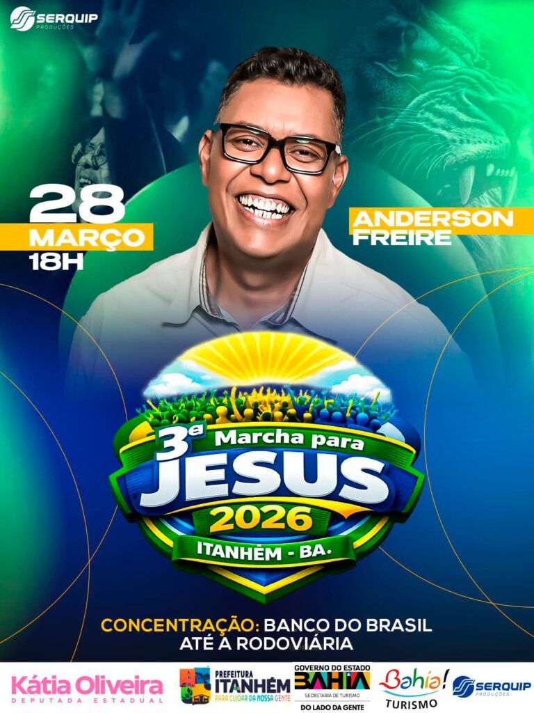O município de Itanhém, no extremo sul da Bahia, recebe no próximo domingo, 28 de março, a partir das 18h, a “Terceira Marcha para Jesus 2026”.