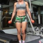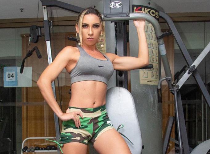 “Sou viciada em academia, estou treinando todos os dias, até nos finais de semana. Divido meus treinos por grupo muscular e gosto mesmo de treinar pernas. E pego pesado! Meus treinos são sempre doloridos, mas estou vendo resultados. Comigo não tem moleza, sou fitness raiz. Levo uma vida regrada, gosto desse ‘sacrifício’, me sinto bem assim”.