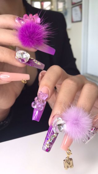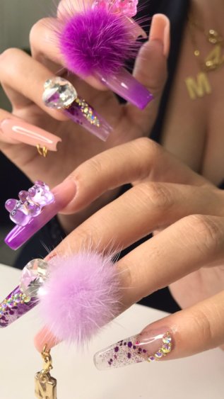 “Criei uma esmalteria com conceito unhas joias para mulheres que amam alongar as unhas com elegância e glamour. As clientes que me procuram são diferenciadas. Elas gostam de unhas longas e com formatos como Stiletto, Almond e Ballerina e lógico com muitas pedrarias, pompons e piercings”, finaliza a nail desing.