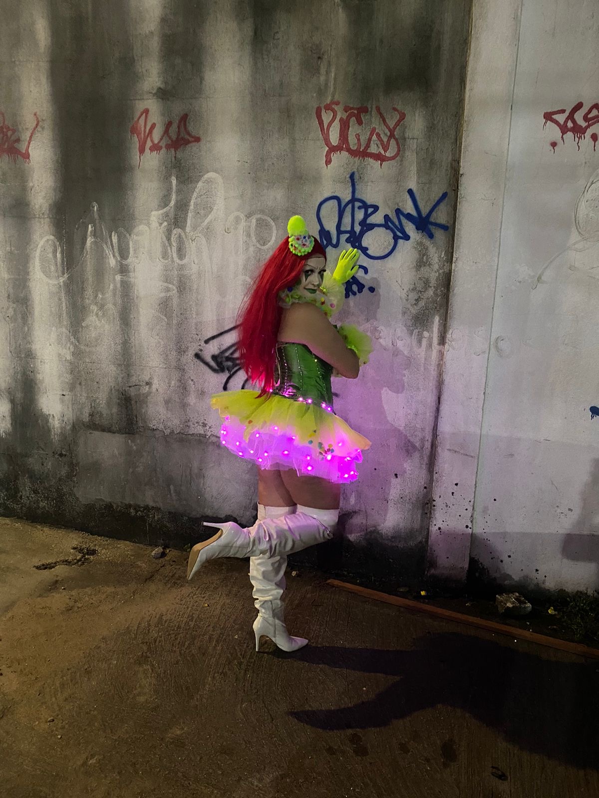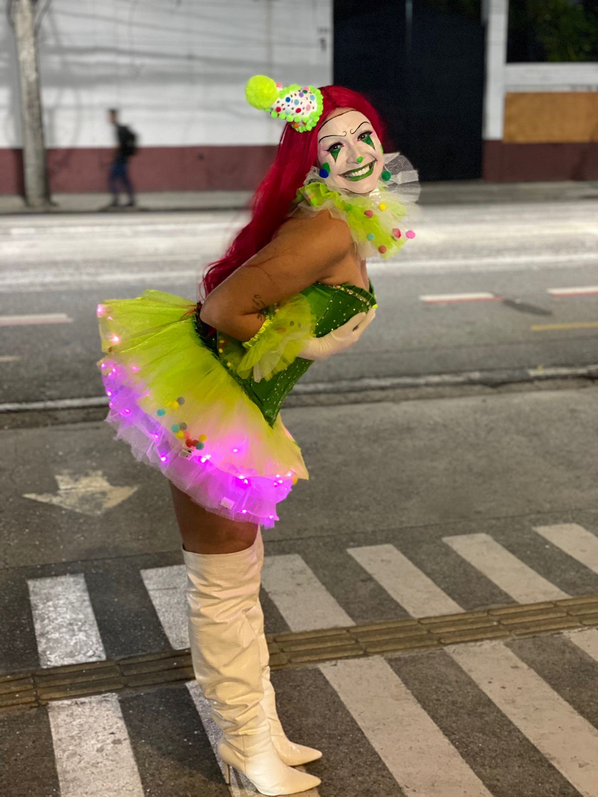 Foi maravilhoso ver toda a minha bateria fantasia da palhaço e a reação das pessoas ao me vê tão diferente das outras rainhas