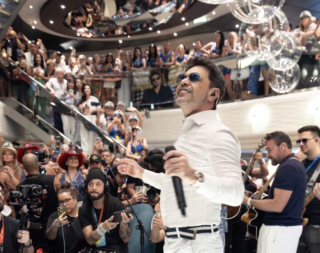 Depois de três dias intensos de shows em alto-mar, o Navio do Zezé atracou em Santos nesta quarta-feira (14), consagrado como um dos maiores encontros musicais flutuantes do país. Comandado por Zezé Di Camargo, o cruzeiro passou por destinos como Búzios e Angra dos Reis, reunindo fãs de todas as regiões do Brasil e também de países da América do Sul, como Chile e Argentina, em uma experiência que uniu música, emoção e celebração, com cabines totalmente esgotadas.