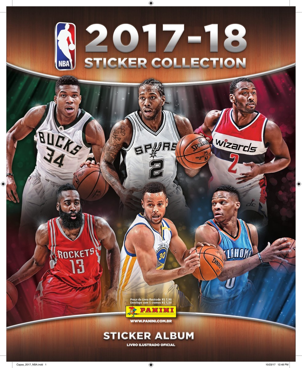 A capa do álbum desta temporada tem Giannis Antetokounmpo (Milwaukee Bucks), Kawhi Leonard (San Antonio Spurs), John Wall (Washington Wizards), James Harden (Houston Rockets), Stephen Curry (Golden State Warriors) e Russell Westbrook (Oklahoma City Thunder). Na quarta capa, estão os escudos das 30 franquias, divididos nas conferências Leste e Oeste. Cinco brasileiros estão confirmados na temporada 2017-2018: Nenê Hilário (Houston Rockets), Bruno Caboclo e Lucas ‘Bebê’ Nogueira (Toronto Raptors), Cristiano Felício (Chicago Bulls) e Raulzinho Neto (Utah Jazz).
