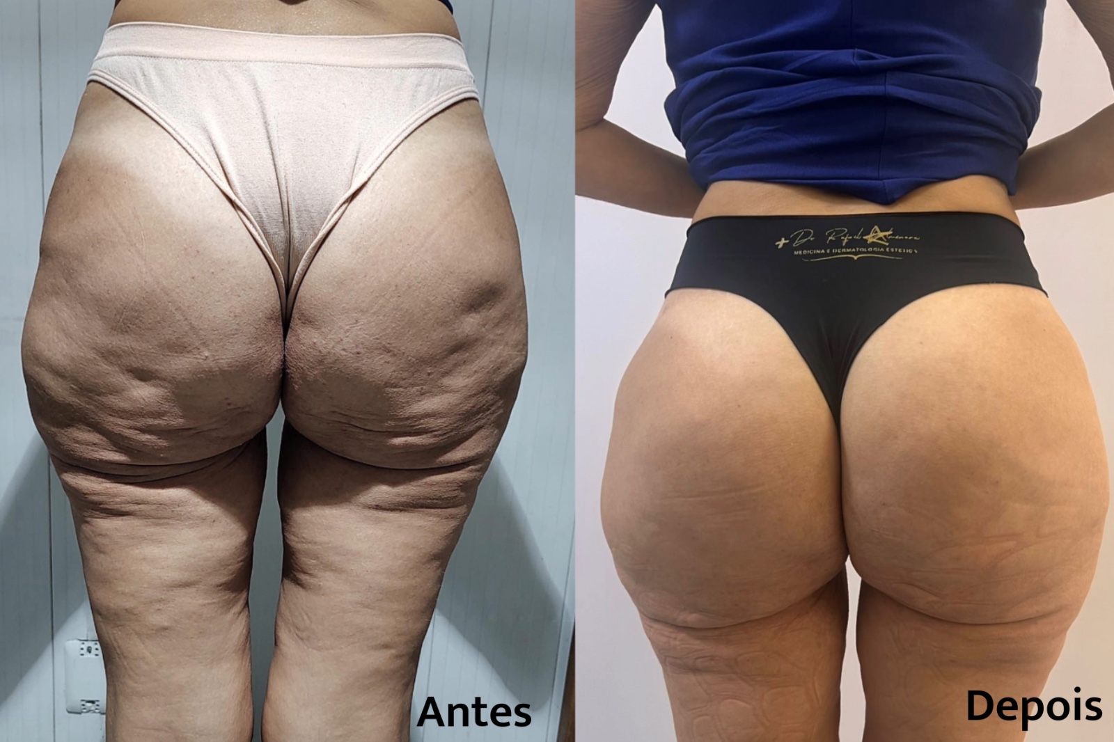 Conforme Dr. Rafael Almenara, a perda de peso costuma vir acompanhada de redução de gordura e massa muscular, especialmente na região glútea, gerando flacidez, celulite e assimetrias.