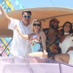 Quem também marcou presença no primeiro dia do ano, em uma simples embarcação e sem glamour foi Boni, Boninho e Ana Furtado.