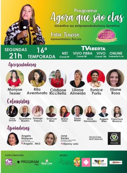 Criado, pela empresária Katia Teixeira, o programa Agora que são elas, é o único a se dedicar exclusivamente a micro empreendedores do país. Suas reportagens, de conteúdo rico e linguagem simples, falam diretamente aos micro e pequenos empreendedores e também atingem um enorme contingente de brasileiros que sonham em abrir os próprios negócios.