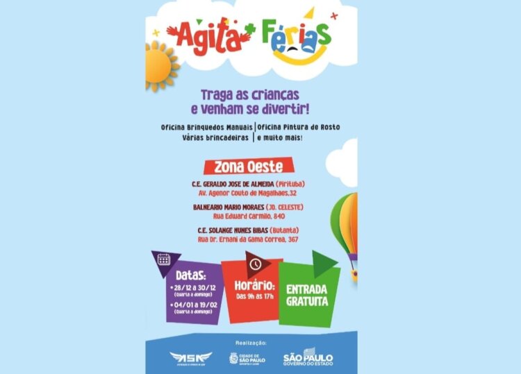 Das 9h as 17h de quarta a domingo até dia 19 de fevereiro o Agita Férias está com a corda toda