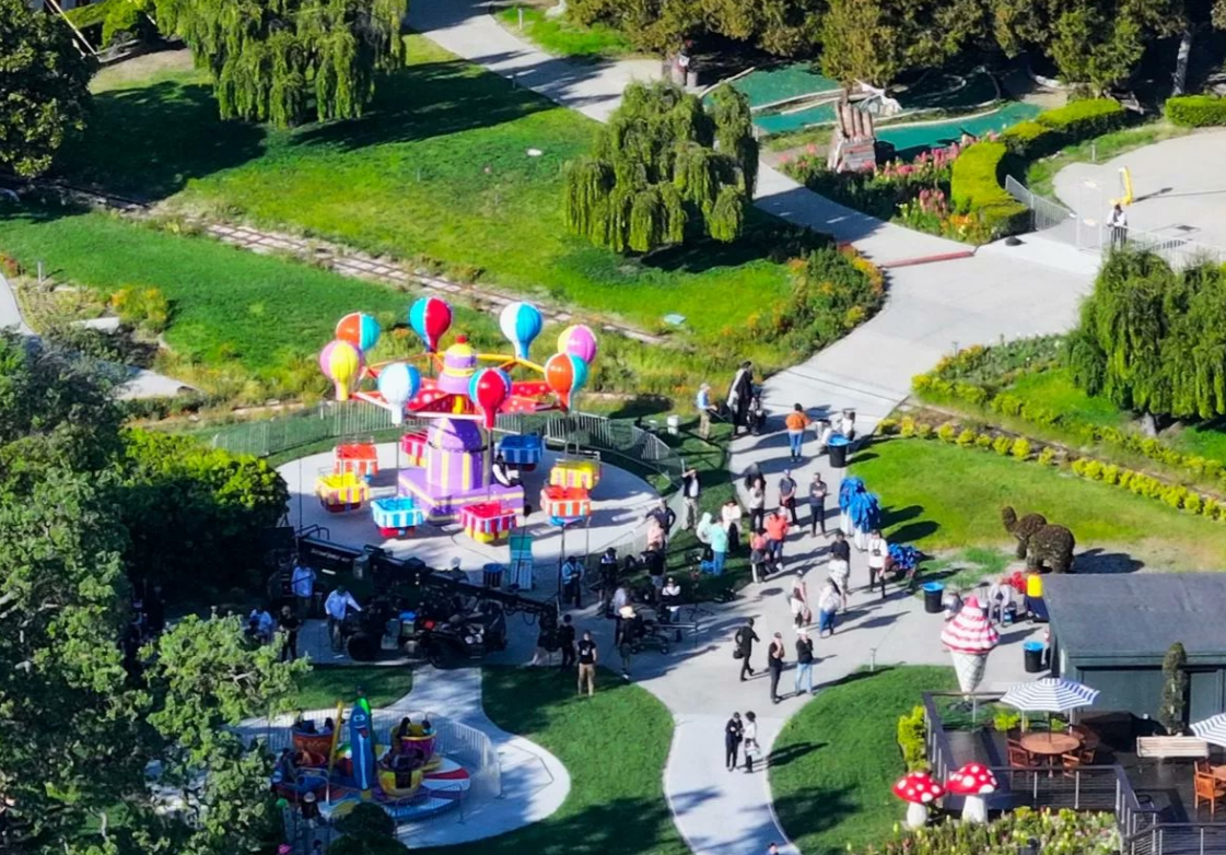 A produção recuperou todo o esplendor da propriedade, reformando atrações clássicas como a roda-gigante, o carrossel e a grande tenda de circo. Imagens aéreas e fotos do local renovado foram divulgadas nesta semana, mostrando o trem, o balão de ar quente e o parque de diversões funcionando novamente, como nos tempos áureos de Michael.
