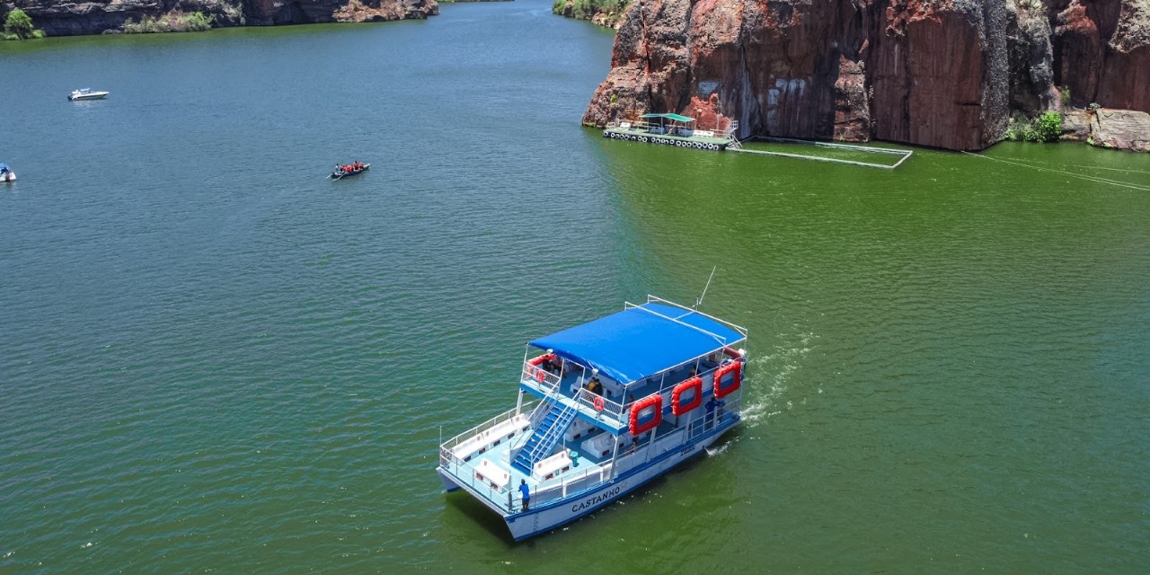 Os passeios de barco pelos cânions são uma excelente maneira de explorar essa maravilha natural, com paradas para nadar em águas cristalinas e apreciar a beleza cênica do local.