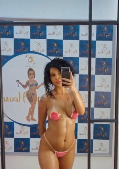 Como especialista em montagem de biquínis com design natural, eu posso te ajudar a alcançar o look perfeito para o seu tipo de corpo. Minha técnica exclusiva de ajuste personalizado e atenção aos detalhes garantem que seu biquíni se encaixe perfeitamente, proporcionando um visual natural e elegante.Diz ela montando um biquini com o sorriso n o rosto.