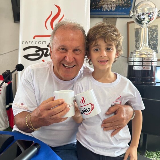 Na última segunda (21), aconteceu a nona edição do “Café com Zico”, que rolou no CFZ (Centro de Futebol Zico), no Rio de Janeiro. No café, os participantes fazem uma resenha com o craque. Apaixonado pelo Flamengo e por futebol, o ator Vicente Alvite, que brilhou recentemente na novela “Travessia”, participou do bate-papo com o ex jogador.